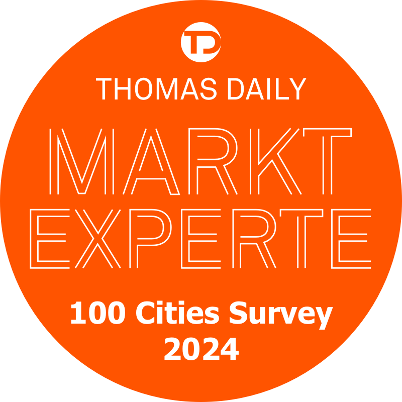 Unsere Datenpartner sind es auch, die den jährlich stattfindenden TD 100 Cities Survey zu etwas ganz Besonderem machen: zu einer der größten Umfrage für gewerbliche Immobilien in Deutschland. Unsere Datenpartner erkennen Sie an unserem exklusiven Siegel „TD Marktexperte“.